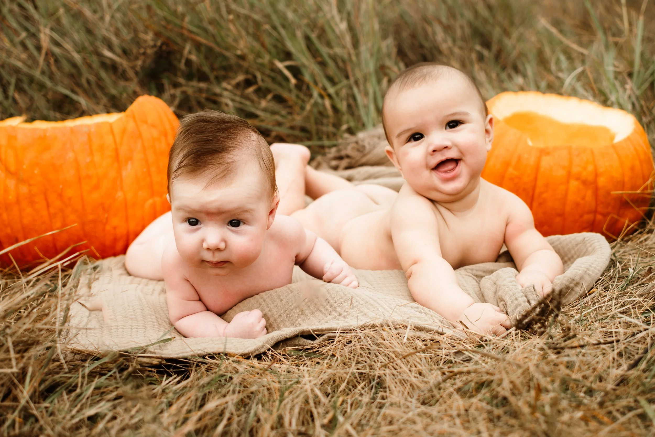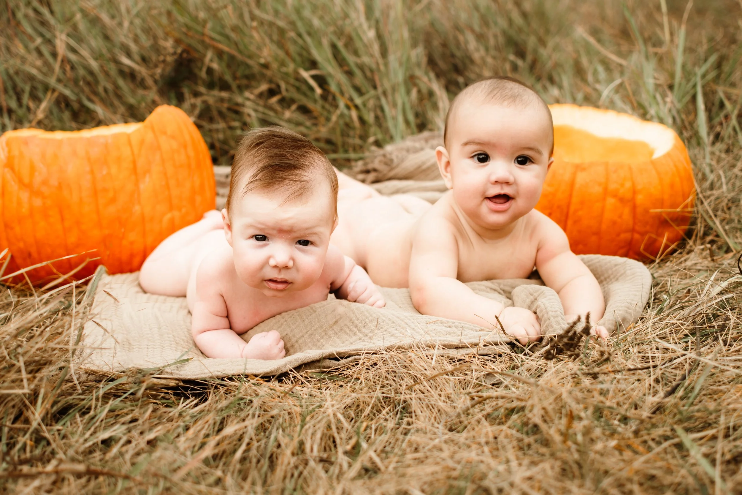 My sister-in-law Haley (who's also an amazing photographer - check out her work here!) and I decided to brave taking pumpkin photos with our little crew: my 4-month-old, Jacob, and her 1-year-old, Piper, and 2-month-old, Wes. (Yes, we were absolutely outnumbered! )